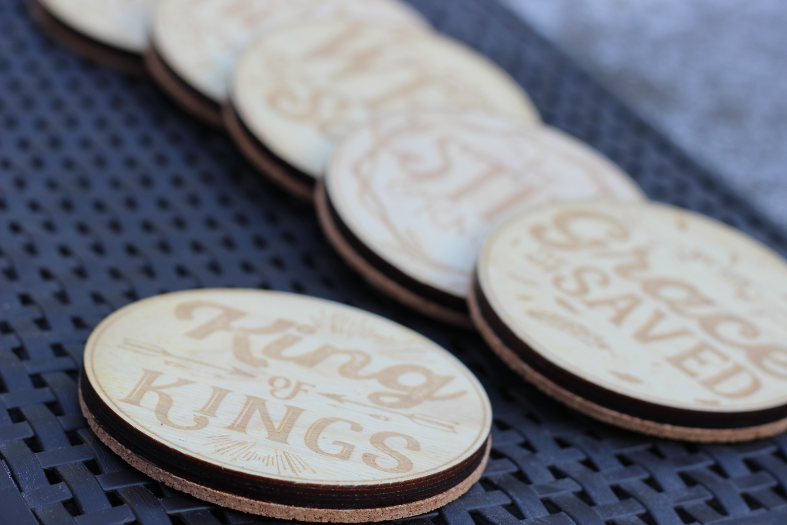 I made a set of coasters for myself, laser cut with scripturely inspiration